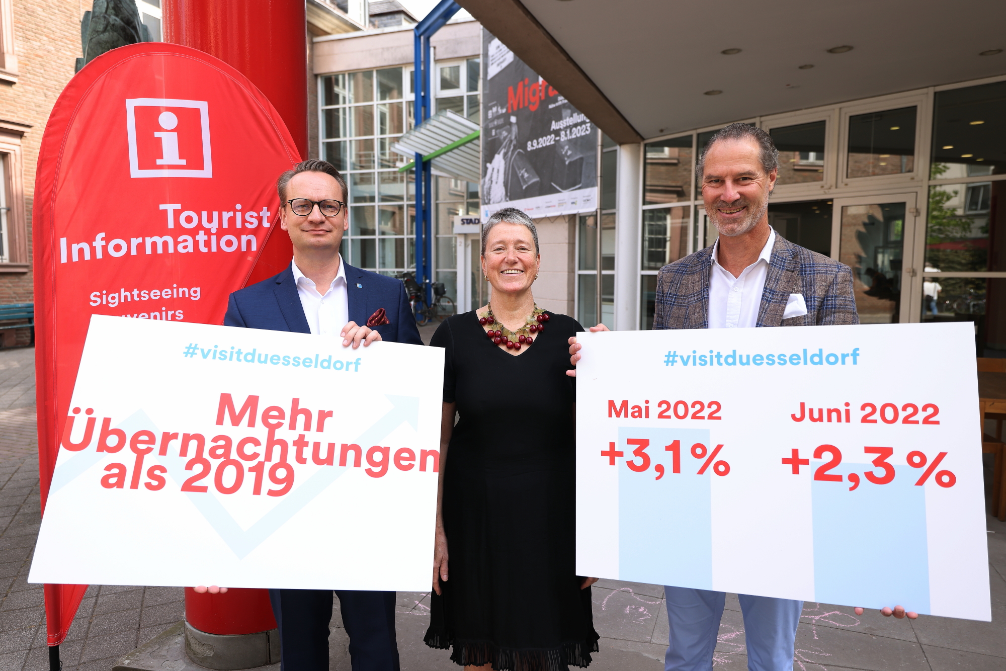 Erstmals seit Beginn der Pandemie verzeichnet Düsseldorf mehr Übernachtungen als 2019: Für Mai und Juni 2022 zählt IT.NRW 432.333 bzw. 441.425 Übernachtungen in Düsseldorfer Hotelbetrieben. Im Jahr vor der Pandemie waren es 419.387 und 431.520 Übernachtungen in den beiden Monaten. „Die Entwicklung zeigt klar, dass die Stadt mit ihrem vielseitigen Angebot von Shopping, Kultur, Kulinarik und auch Veranstaltungen für Gäste von außerhalb attraktiv ist“, so Dr. Michael Rauterkus, Aufsichtsratsvorsitzender von Düsseldorf Marketing und Düsseldorf Tourismus.