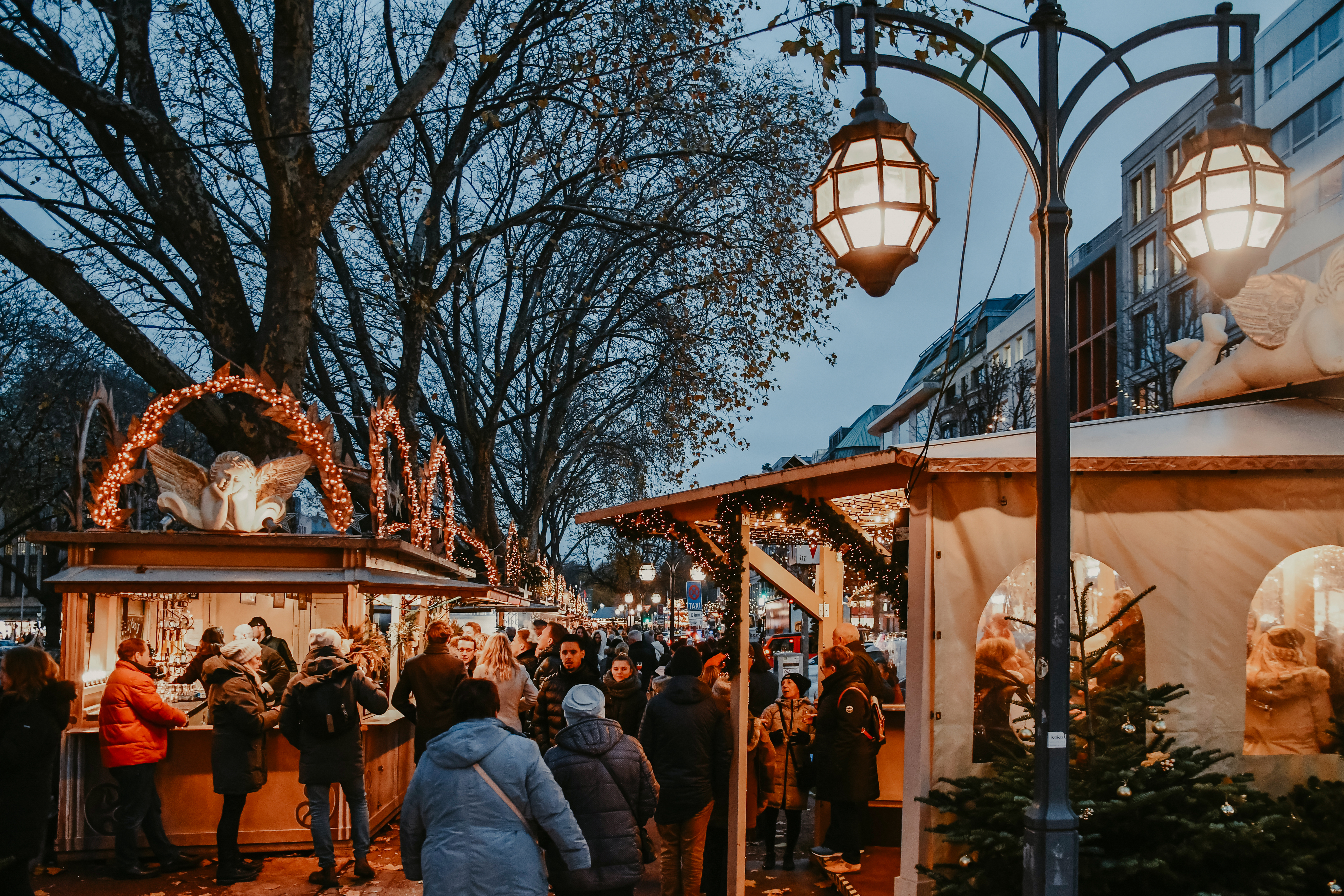 Bis zum 30. Dezember lädt der Düsseldorfer Weihnachtsmarkt zum Besuch der Innenstadt ein. Er sorgt für das stimmungsvolle Ambiente, das viele Gäste aus dem In- und Ausland zur Weihnachtszeit nach Düsseldorf führt. Die große Eislaufbahn auf dem Corneliusplatz an der Königsallee ist auch in diesem Jahr wieder ein Publikumsmagnet. Wer hoch hinaus will, wird auf dem Burgplatz fündig: Das Riesenrad ermöglicht einen Panoramablick über die weihnachtliche Altstadt und den Rhein.