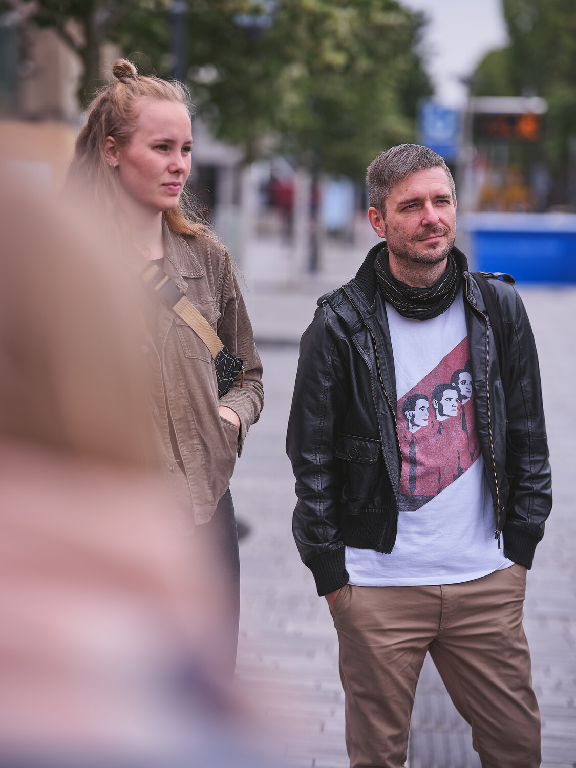 Our guide of the tour "The Sound of Düsseldorf" remembers Florian Schneider from Kraftwerk.
