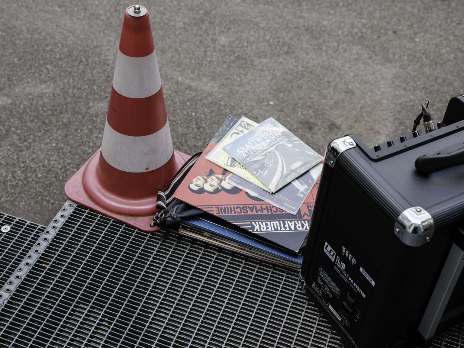 I suspected as a child that air raids are simulated acoustically here, which eventually grow into a driving rhythm that later in the piece has a powerful impact and is quite danceable. The nephew who received the tape was seven years old, and thus actually much too young to understand what he was holding in his hands. It wasn't just the humour that underlies this early piece of the band. It was the legendary record itself with the orange and white striped traffic cone, the hallmark of the group Kraftwerk par excellence, on its cover. When you open the double cover, you see a black-and-white photograph of a transformer pumping its electrical voltage into copper cables. The photograph is by Bernd and Hilla Becher. It demonstrates how intensive the exchange between the visual arts in the sphere of the Düsseldorf Art Academy and the new music scene from Düsseldorf already was back in 1970.