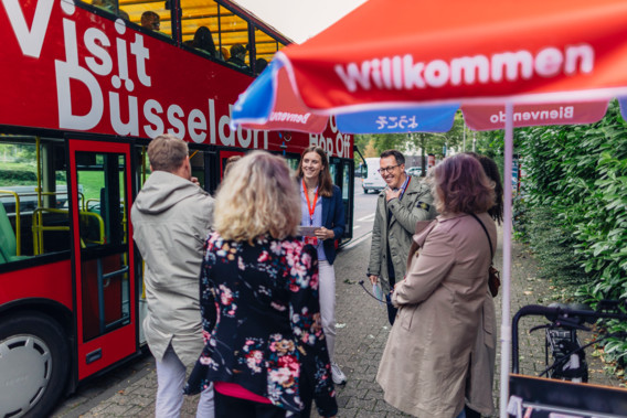 Am 17. September haben wir gemeinsam Düsseldorf aus einer neuen Perspektive entdeckt: Wie sieht nachhaltiger Tourismus in Düsseldorf praktisch aus und was können wir voneinander lernen? Welche Ideen und wegweisenden Projekte gibt es bereits? Und wie können wir als Branche gemeinsam mehr bewegen? Mit der „Travel InDUStry Roadshow – nachhaltig unterwegs“ konnten unsere Partner*innen das grüne Düsseldorf hautnah erleben: Im vollelektrischen Hop On Hop Off Bus entdeckten wir gemeinsam innovative Orte, begegneten engagierten Akteur*innen und nutzten die Gelegenheit für inspirierenden Austausch und neue Kooperationen.